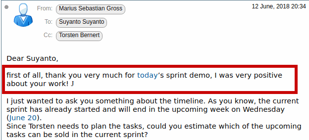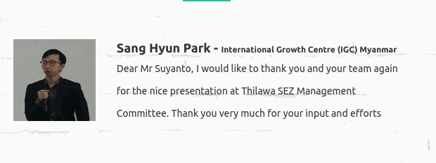 I think working with NISU has been an absolute pleasure. In particular, I would like to mention Mr Suyanto. He has been very meticulous, detail-oriented and responsive to our requests on the Thilawa SEZ project, and I look forward to working with him in the future on more projects.