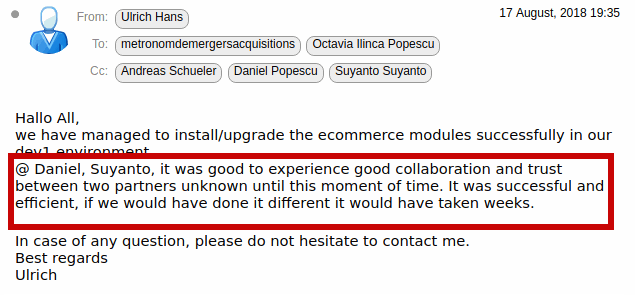 We had a great collaboration during our ERP system configuration.